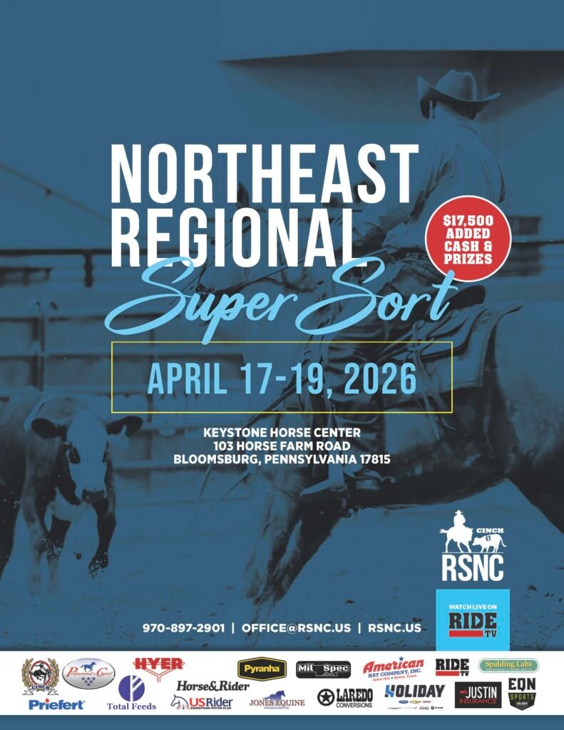 What: A three-day Cinch RSNC Ranch Sorting event at the Keystone Horse Center in Bloomsburg, Pennsylvania, from April 17-19, 2026 with $17,500 in added cash and prizes up for grabs. Various classes cater to all levels of riders, including the elite Gold Shootout classes.