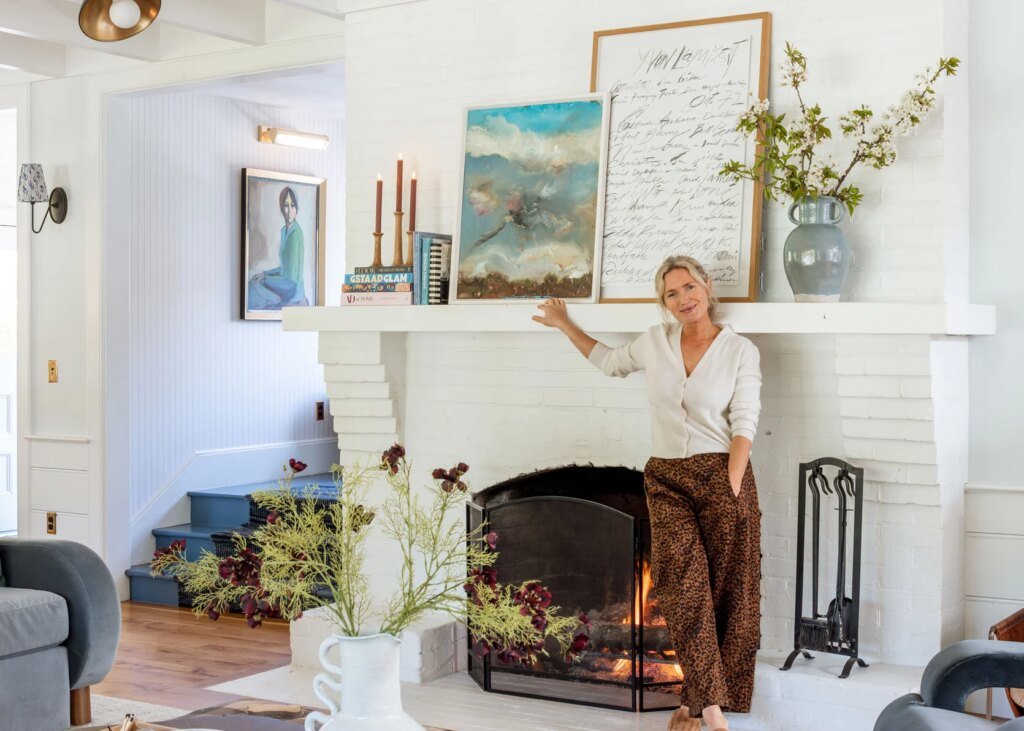 In the most recent update, I added layers to the mantel, incorporating a mix of art, books, and fresh flowers, creating a harmonious and inviting vibe in the space.