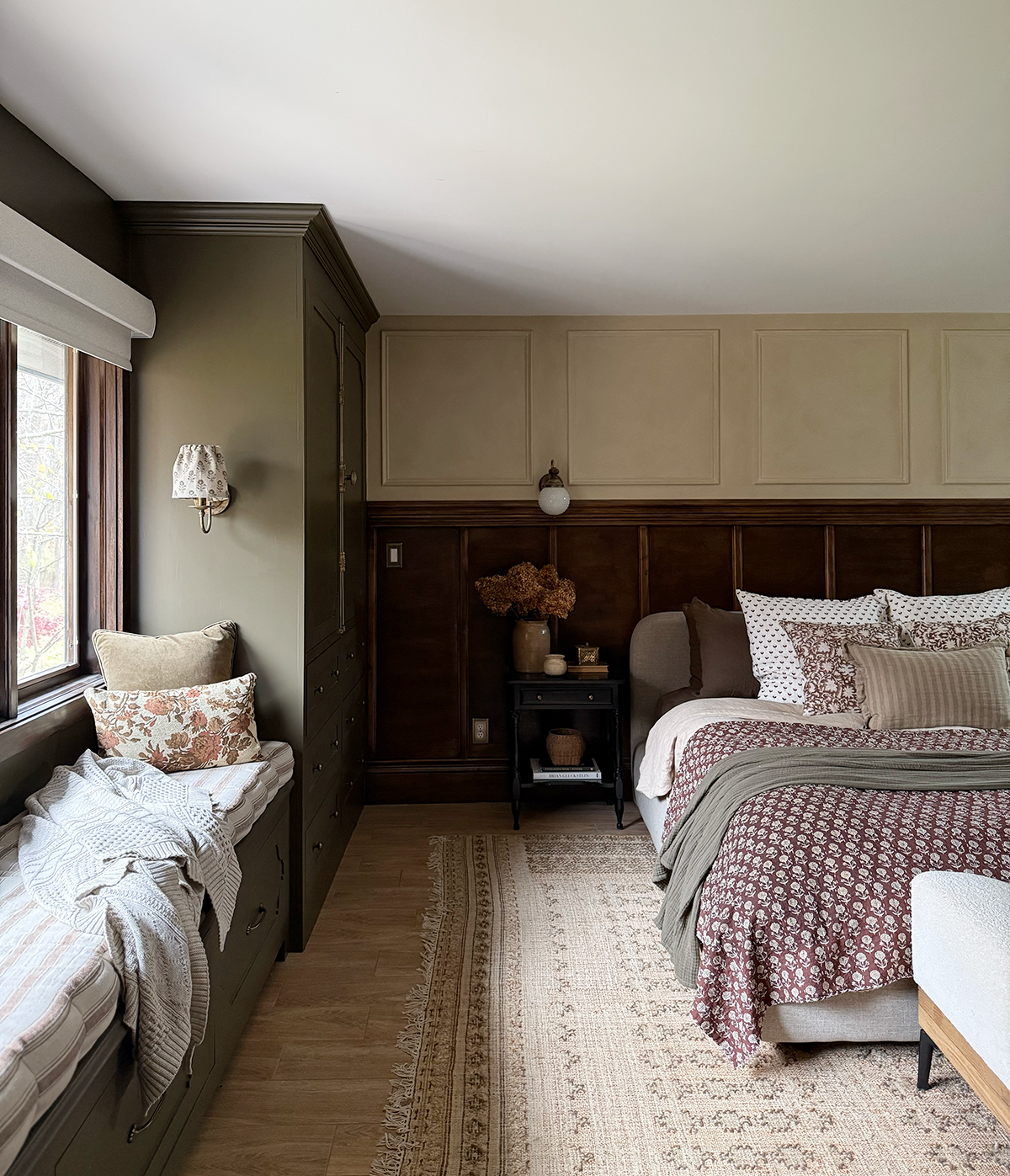 The colors and textures in this space blend beautifully, creating a perfect balance of comfort, coziness, and sophistication.