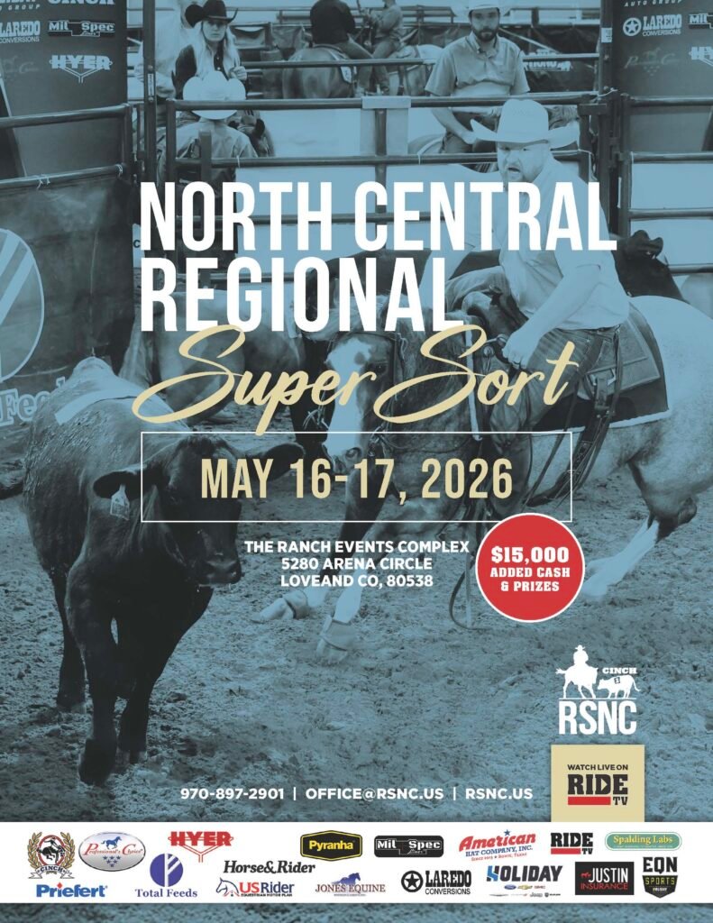 Ranch sorters are gearing up for the North Central Regional Super Sort at The Ranch Events Complex in Loveland, Colorado, on May 16-17, 2026. This event will feature $15,000 in added cash, Gold Shootout classes, and two full days of competition for riders of all levels.
