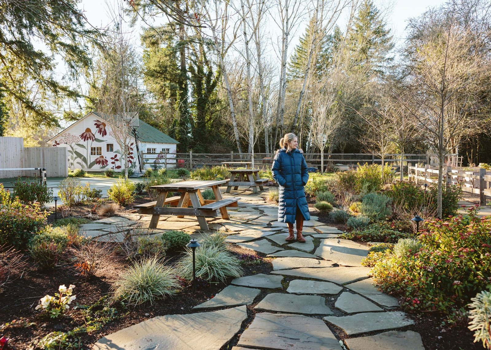 I believe most of us can relate to the fact that the internet often lacks content showcasing the less-than-perfect yet crucial aspects that influence our design choices. It wasn’t until we experienced a couple of winters in our current location that I truly understood the significance of having evergreen plants. The gray, wet, and dark winter months made me realize that relying solely on perennials, with their showy flowers and wild appearance, was not enough to liven up our yard during the winter. When Dennis’ 7 Dees revamped our sports court and added new landscaping, we made sure to include greenery that would provide year-round beauty. While I was hesitant to part with some of my favorite plants for the sake of variety, I trusted their expertise. It wasn’t until January that I saw the final result, and I was relieved to see how beautiful it turned out. Although it may not be as photogenic as it is in the summer or styled to perfection, I hope this glimpse into our winter yard can help you feel understood if you’re facing a similar situation.