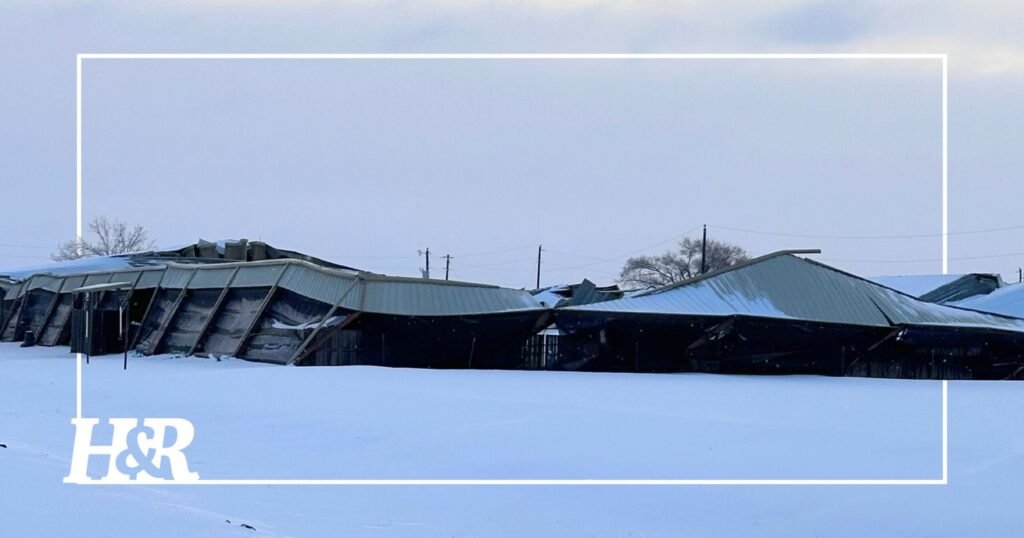 “I calculated the minimum weight on there, and it was a ridiculous number—around 357,000 pounds, just from the ice,” Vanlandingham explained. “That’s not counting any snow. That’s a lot of semi-loads of alfalfa sitting on top of a barn.”