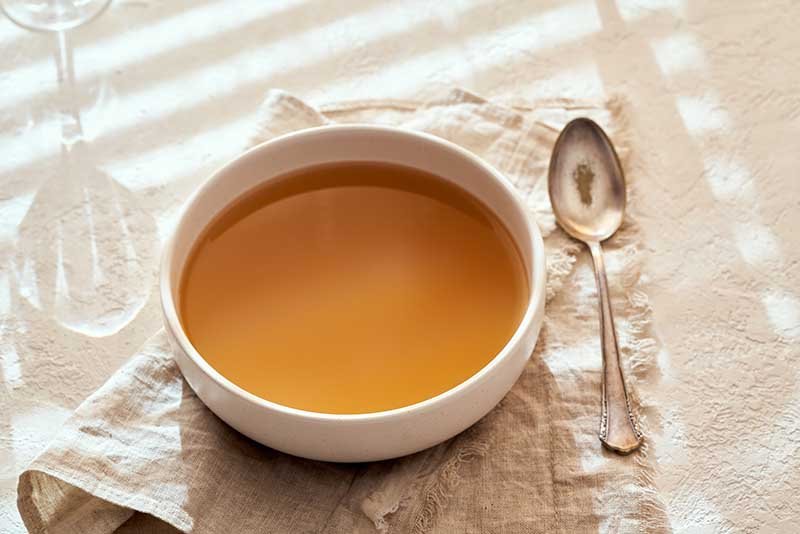 Stick with low-fat, low-sodium broths and avoid stock with onions or other harmful ingredients. Homemade bone broth is even better, and your dog will love it.